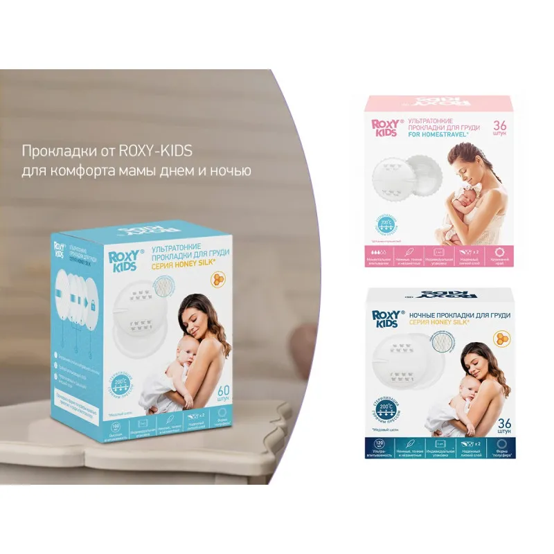 Tampoane pentru sani ultra subtiri Roxy Kids „Honey Silk” 100 ml. (60 buc.) (RBP-R130F-60)