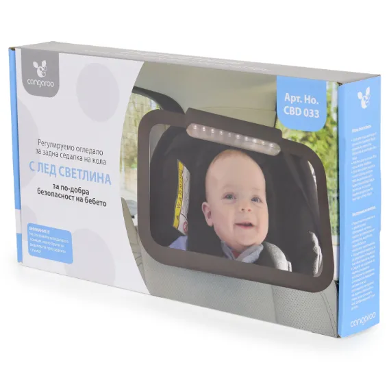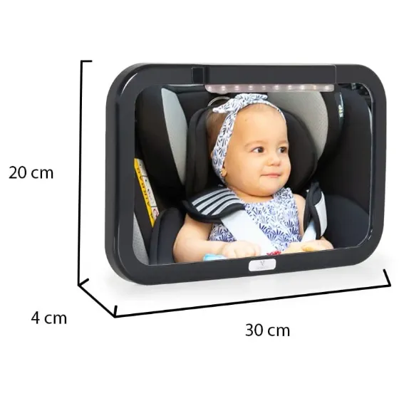 Oglindă ușor de montat, care se prinde în câteva secunde pe spătarul scaunului din spate și se rotește și înclină pentru o vizibilitate mai bună cu lumină LED. Proiectată pentru a vă ajuta să vedeți copilul când este în scaunul auto, orientat în sens opus direcției de mers, fără a vă întoarce capul în timp ce conduceți.