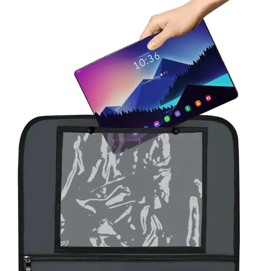5 buzunare versatile. Un buzunar mare cu fermoar, două buzunare mai mici pentru sticle sau gustări, un buzunar mic practic și un buzunar pentru tabletă ajută la menținerea ordinii în mașină și la păstrarea tuturor lucrurilor la îndemână.
