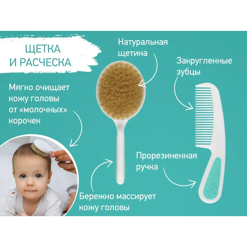 Îmbunătățește circulația sângelui în scalp și stimulează foliculii de păr, accelerând creșterea primului păr al bebelușului.