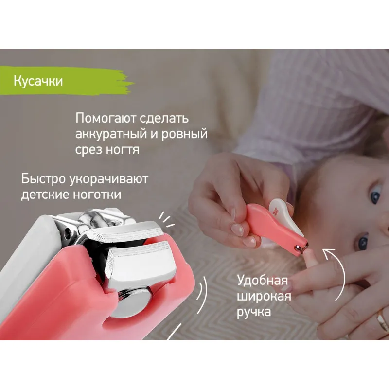Foarfecele rotunjite sunt ideale pentru unghiile moi și mici ale bebelușilor, o pila cu granulație fină va elimina unghiile neuniforme după tăiere, iar cleștele vor ajuta la realizarea unei tăieturi îngrijite și uniforme a unghiei.