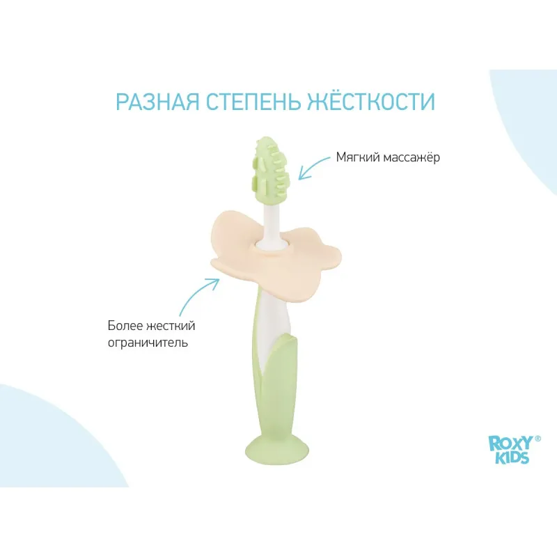 Setul de periuțe de dinți FLOWER de la ROXY-KIDS este conceput pentru îngrijirea bucală confortabilă și sigură pentru un copil din primele luni de viață.