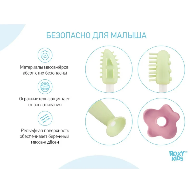Setul de periuțe de dinți FLOWER de la ROXY-KIDS este conceput pentru îngrijirea bucală confortabilă și sigură pentru un copil din primele luni de viață.