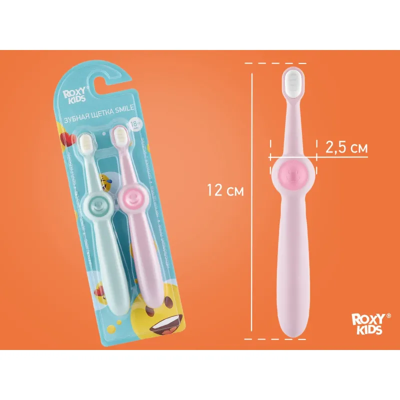 Periuțele de dinți SMILE de la ROXY-KIDS cu peri ultra-moi sunt concepute pentru îngrijirea confortabilă și sigură a primilor dinți și a cavității bucale a bebelușului.