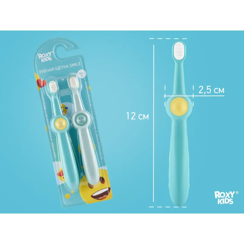 Periuțele de dinți SMILE de la ROXY-KIDS cu peri ultra-moi sunt concepute pentru îngrijirea confortabilă și sigură a primilor dinți și a cavității bucale a bebelușului.
