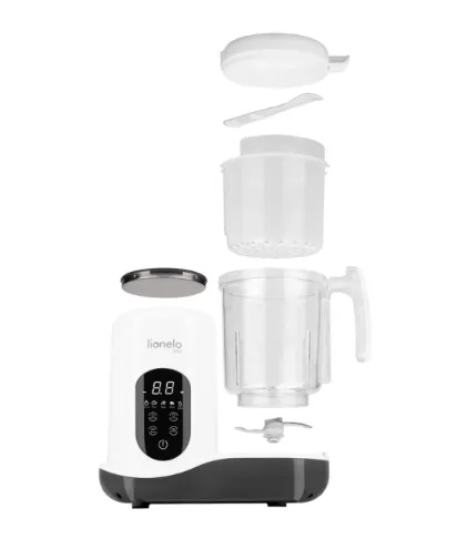 Lionelo BabyMenu este un aparat modern care ofera functii de gatire la abur, mixare, decongelare, incalzire si sterilizare, permitandu-ti sa pregatesti o masa sanatoasa intr-un timp scurt. Prioritatea noastra este sa sprijinim parintii in crearea unor obiceiuri alimentare sanatoase - datorita posibilitatilor oferite de BabyMenu, ingrijitorii pot crea cu usurinta si rapid o masa sanatoasa si variata, indiferent de conditii. Cu ajutorul acestuia, un parinte poate nu doar sa incalzeasca laptele sau un borcan, ci si sa gateasca la abur legume, fructe, peste sau carne, ba chiar sa opareasca alimentele. Astfel, extinderea dietei celui mic devine mult mai simpla, iar prepararea mesei se desfasoara in conditii igienice. Aparatul are un incalzitor integrat, care permite nu doar incalzirea rapida, ci si decongelarea laptelui sau a borcanului. Intre timp, functiile de gatire la abur si mixare fac mult mai usoara crearea meselor sanatoase de la zero. Tot ce trebuie sa faci este sa torni apa in rezervor, sa adaugi alimentele in cosul dedicat si apoi sa activezi functia de gatire la abur prin simpla apasare a unui buton. Scoate ingredientele finite cu clestele inclus si mixeaza-le datorita lamelor de la baza. Cupa, fabricata din tritan, nu este doar sigura, ci si durabila. In acelasi timp, posibilitatea de a seta manual sau automat timpii de mixare, gatire la abur sau incalzire iti permite sa ajustezi configuratia aparatului la nevoile tale. Prin combinarea a pana la cinci functii, un parinte poate compune rapid si usor o masa sanatoasa pentru copilul sau - ajustand marimea portiei si consistenta in functie de cerintele curente.