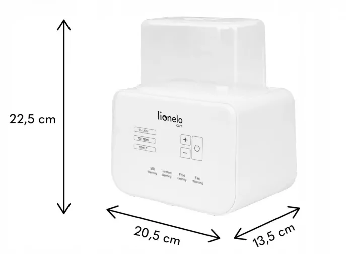 Incalzitorul dublu de biberoane Lionelo Thermup este un dispozitiv functional care este ideal pentru ingrijirea unuia sau doi copii mici. Un recipient cu mâner facilitează obținerea unei sticle sau borcan fierbinte fără riscul de a se arde. Recipientul practic de sterilizare mentine lucrurile curate si este util pentru incalzirea rapida. Dispozitivul este alimentat de un cablu de la o priză electrică.