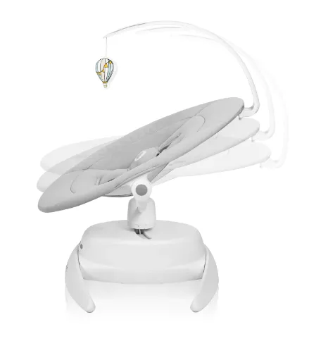Trei mișcări unice de balansare: Balansoarul Iris reproduce ritmul natural de balansare al unui părinte cu trei mișcări distincte de balansare. Această caracteristică nu doar că previne plictiseala bebelușului, dar oferă și o mișcare reconfortantă și familiară.