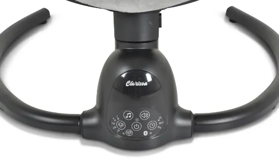 Leagănul electric Clarissa are un design elegant și curat, potrivit pentru orice interior. Are 5 viteze de legănare din care puteți alege. Leagănul are un senzor de mișcare încorporat, care poate activa automat legănarea atunci când copilul se mișcă. Cu ajutorul funcției Bluetooth, puteți reda muzică la alegere, în cazul în care nu doriți să utilizați cele 10 melodii disponibile. Leagănul funcționează doar cu un adaptor cu un cablu de 5m (inclus în set). Poate fi controlat fie prin panoul tactil al mecanismului, fie printr-o telecomandă. Opțional, puteți utiliza și temporizatorul cu opțiuni de 8, 15 și 30 de minute. Selectând una dintre aceste opțiuni, leagănul se oprește după intervalul specificat de timp. Centura de siguranță cu 5 puncte se va asigura de siguranța copilului. Produsul vine cu un parasolar cu plasă împotriva insectelor și 2 jucării de pluș. În set este inclusă și o pernă moale pentru confortul bebelușului. Tapiseria poate fi ușor îndepărtată pentru spălare. Leagănul poate fi demontat rapid și ușor de către un adult printr-o singură mișcare. În plus, construcția sa extrem de ușoară îl face convenabil pentru a fi transportat în altă cameră sau în călătorii.