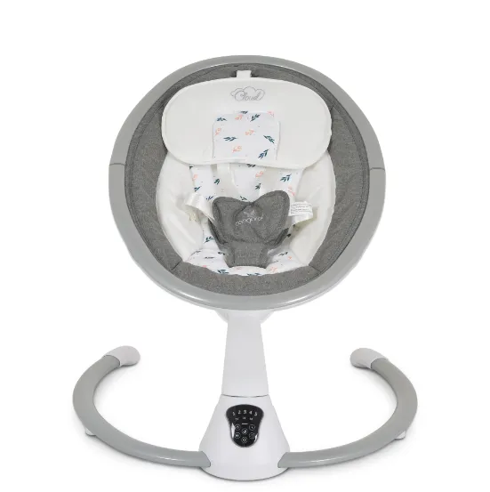 Funcții: 5 viteze de leagăn; timer pentru oprire automată cu 3 opțiuni; cutie muzicală cu 12 melodii și 5 sunete naturale cu opțiune de reglare a volumului; funcție de "șezlong"; rotație a scaunului; detector de mișcare pentru copil