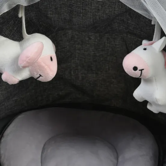 Perna moale, cu suport pentru cap Copertina cu jucarii de plus va capta atentia copilului .