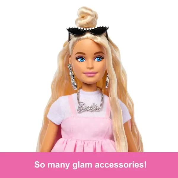 Vă prezentăm păpușa Barbie Deluxe Style în rochie roz pastel Barbiecore cu fundă supradimensionată și păr blond (HYV27), care întruchipează stilul modern și eleganța.