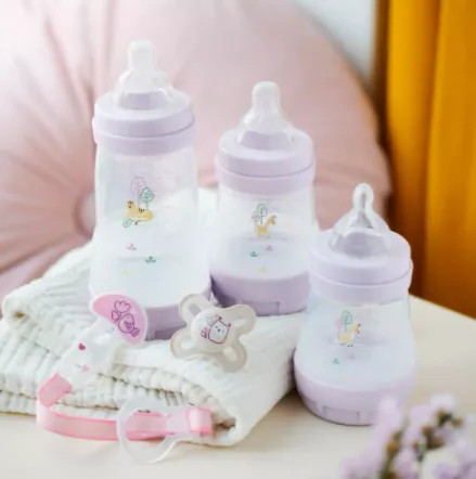 Sticla pentru bebeluși MAM Anti-Colic permite copiilor să bea confortabil în propriul lor ritm.