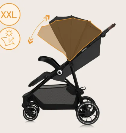 Zona de odihnă spațioasă – până la 91 cm când este extinsă – și capota înaltă fac căruciorul confortabil și pentru copiii mai mari.