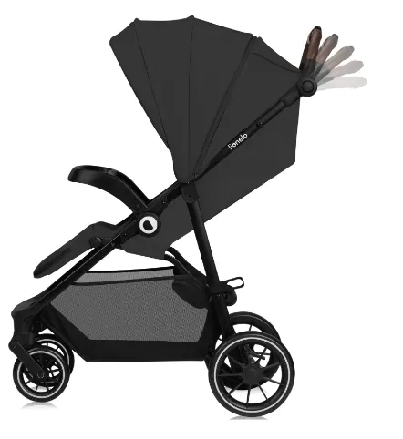 Spătarul căruciorului este reglabil infinit, asigurând sprijinul capului bebelușului în timpul somnului, pentru un somn confortabil. Când este complet înclinat în poziție orizontală, scaunul oferă un spațiu de 91 cm. Spătarul include un panou de ventilație suplimentar pentru a menține confortul termic al copilului.