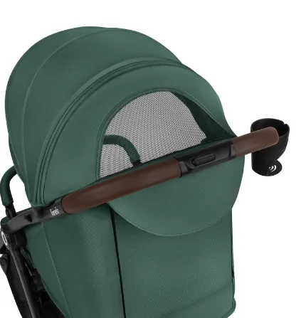 Copertina spațioasă oferă confort și protecție chiar și pentru copiii mai mari. Este impermeabilă și are cel mai mare factor de protecție solară (UPF 50+). Căruciorul este echipat cu o protecție solară care oferă adăpost de soare și un panou detașabil ce permite extinderea suplimentară a copertinei. Setul include un plasă pentru țânțari și un suport pentru băuturi.