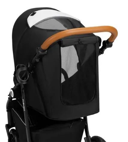 Modelul Caruciorului de plimbare Lionelo Natt Black Onyx vine cu un coș mare pentru articole de bază, o plasă de țânțari ascunsă în suport pentru picioare și un buzunar la îndemână pentru obiecte mici.