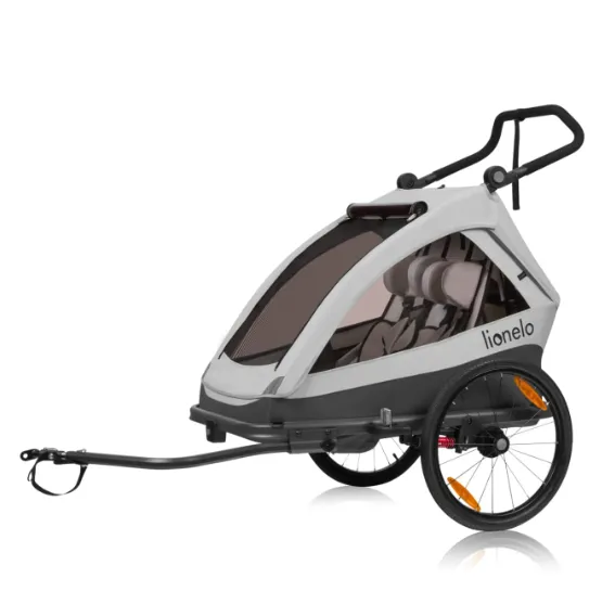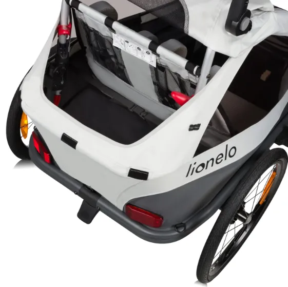Lionelo Cama este un produs 2 în 1 care combină funcțiile unui remorcă pentru bicicletă și a unei cărucioare. Amortizarea ultra-comodă face ca Cama să fie o soluție perfectă pentru mersul pe terenuri mai dificile, în timp ce mânerul său reglabil în mai multe trepte asigură plimbări confortabile în oraș. Sistemul inovator All-Round-Safety garantează protecția micuțului dumneavoastră, protejând împotriva impacturilor potențiale și oferind o bună vizibilitate în condiții de iluminare redusă. Pentru un confort maxim, am inclus spătarul Head+ cu o plasă specială care permite copiilor să își odihnească capul confortabil, mai ales în timpul somnului. Cu o capacitate de încărcare mare de 22 kg pe copil, remorca poate acomoda confortabil atât unul, cât și doi copii. Lățimea optimă (80 cm) asigură manevrabilitate ușoară în timpul mersului.