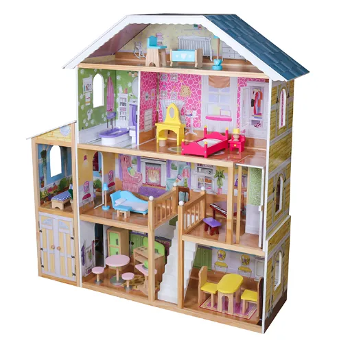 Casă de păpuși din lemn cu mobilier, cod W06A358 — un set de joacă impresionant pentru copii, ideal pentru jocuri de rol creative.