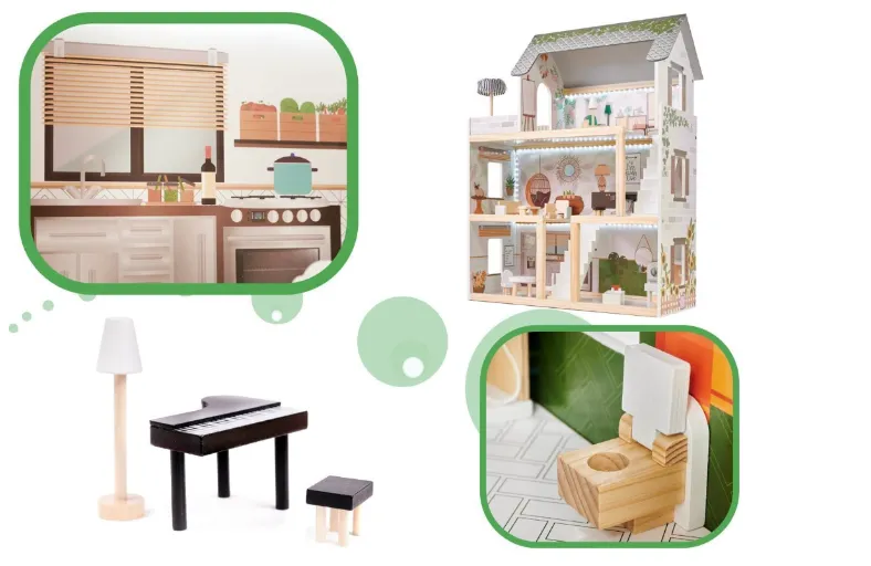 Destinaţie: căsuţă‑jucărie pentru păpuşi, ideală pentru jocuri de rol, decorare cu mini‑mobilă și accesorii.