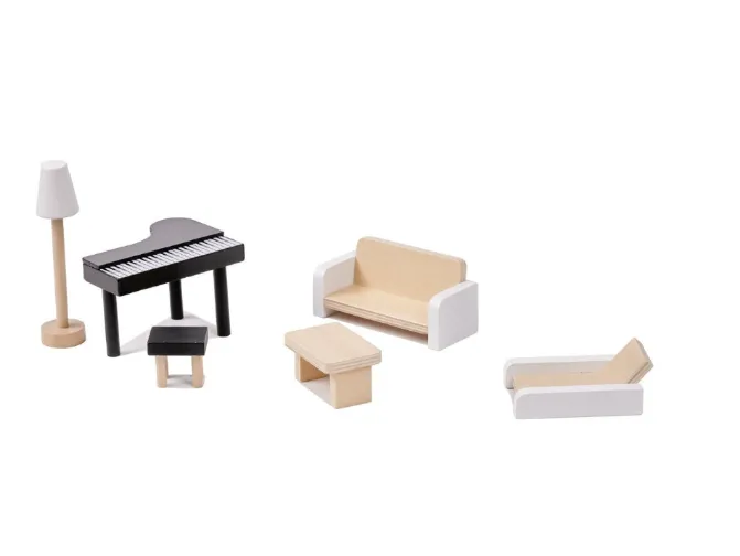 Casă de păpuși din lemn — W06A413C (61,3 × 26,4 × 77,4 cm, gri)