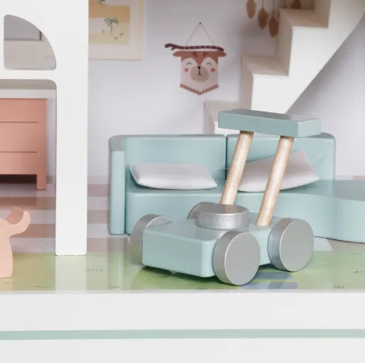 Căsuță din lemn pentru păpuși cu iluminare și funcție de povestire, cod W06A578 — o jucărie specială care îmbină distracția cu învățarea.