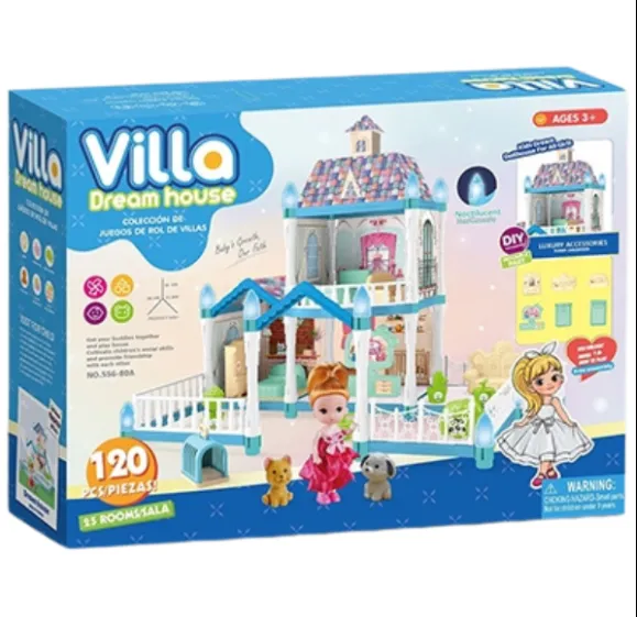Căsuță pentru păpuși „Vila Visurilor” + accesorii, cu iluminare de noapte, 120 elem.