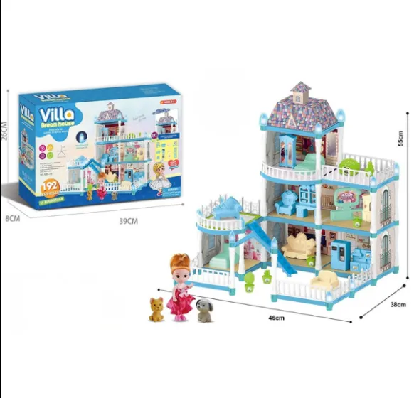 Căsuță pentru păpuși „Vila Visurilor” + accesorii, cu iluminare de noapte, 192 el.