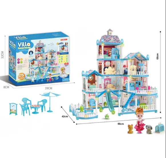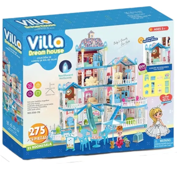 Căsuță pentru păpuși „Vila Visurilor” + accesorii, cu iluminare de noapte, 275 elem.
