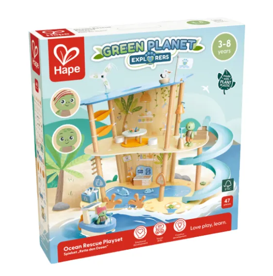 Învață cum să curățăm oceanele cu acest set de bază pentru salvarea oceanului! Acesta include două figurine de țestoase și cinci animale de îngrijit. Setul are două etaje, oferind multă distracție, inclusiv o tobogan spiral și chiar o barcă rapidă solară!