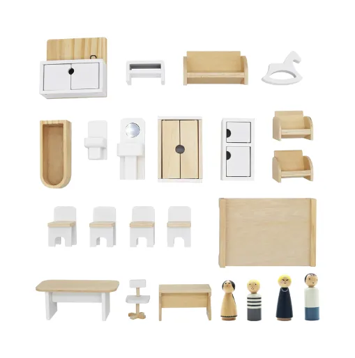 Căsuța are mai multe niveluri și camere și include 19 piese de mobilier, oferind o experiență de joc captivantă și contribuind la dezvoltarea imaginației copilului. Potrivită pentru păpuși de până la 30 cm. Robustă, sigură și cu un design atractiv — cadoul perfect pentru orice copil.