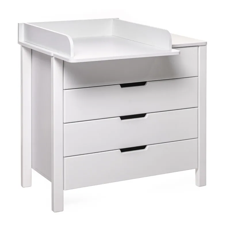 Partea superioară a comodei poate fi pliată cu ușurință și se transformă într-un loc de schimbare convenabil, care poate fi, de asemenea, îndepărtat cu ușurință dacă este necesar. Iar laturile rotunjite vă permit să nu vă faceți griji pentru siguranța copilului dumneavoastră.