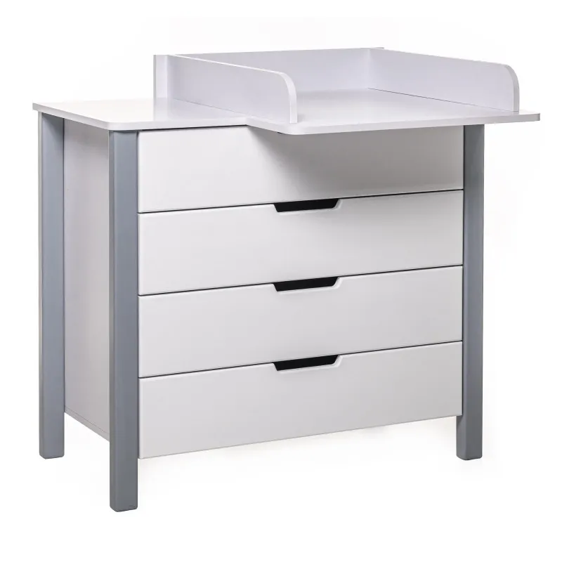 Partea superioară a comodei poate fi pliată cu ușurință și se transformă într-un loc de schimbare convenabil, care poate fi, de asemenea, îndepărtat cu ușurință dacă este necesar. Iar laturile rotunjite vă permit să nu vă faceți griji pentru siguranța copilului dumneavoastră.