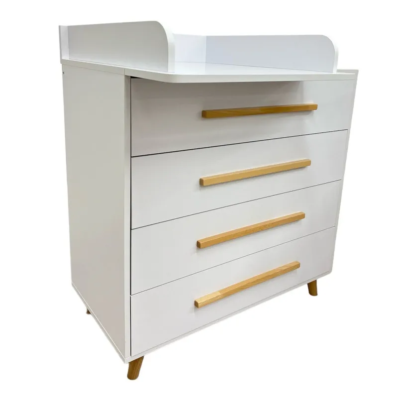 Partea superioară a comodei poate fi pliată cu ușurință și se transformă într-un loc de schimbare convenabil, care poate fi, de asemenea, îndepărtat cu ușurință dacă este necesar. Iar laturile rotunjite vă permit să nu vă faceți griji pentru siguranța copilului dumneavoastră.
