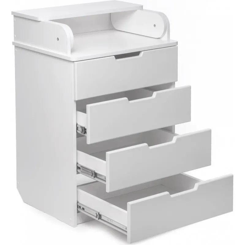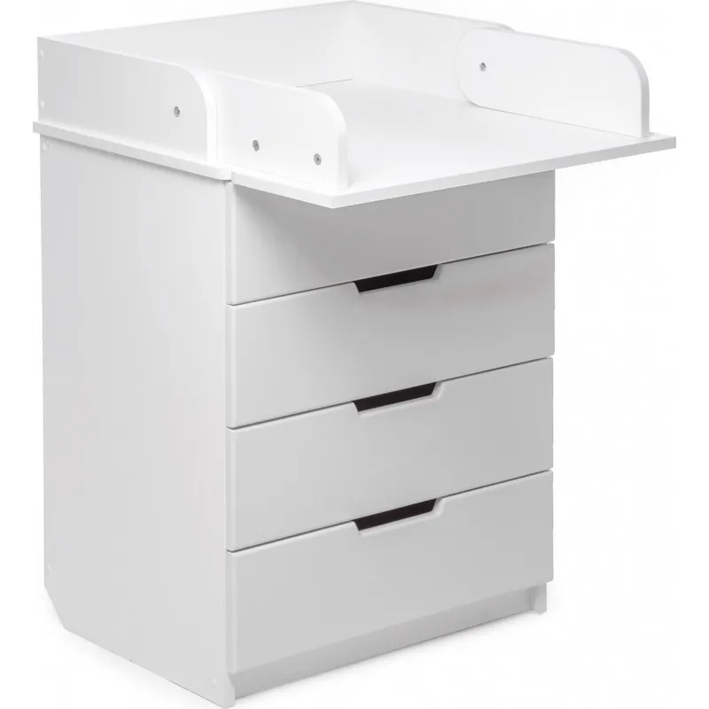Partea superioară a comodei poate fi pliată cu ușurință și se transformă într-un loc de schimbare convenabil, care poate fi, de asemenea, îndepărtat cu ușurință dacă este necesar. Iar laturile rotunjite vă permit să nu vă faceți griji pentru siguranța copilului dumneavoastră.