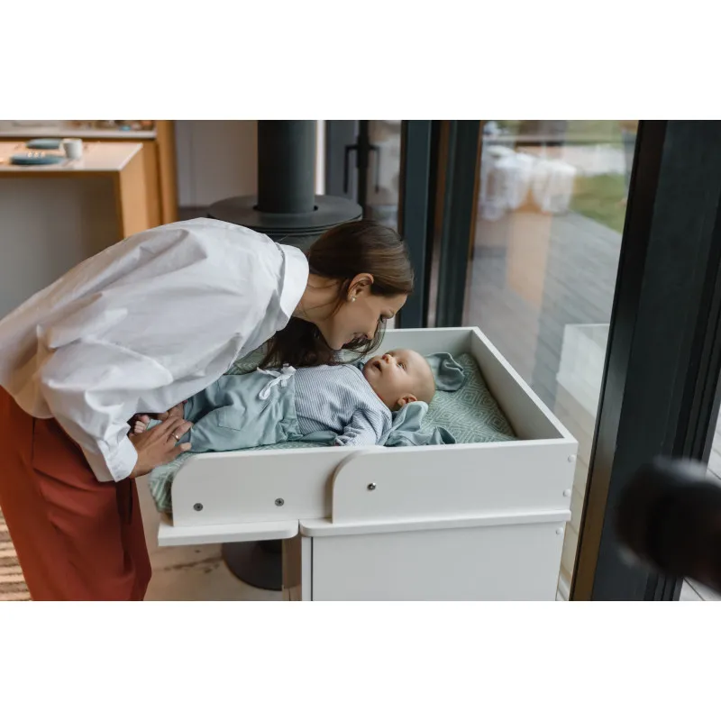 Partea superioară a comodei se transformă într-o măsuță de înfășat;