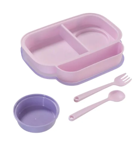 Caserolă compartimentată 3 în 1 cu linguriță, furculiță și capac, mov