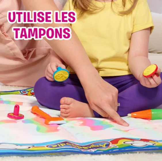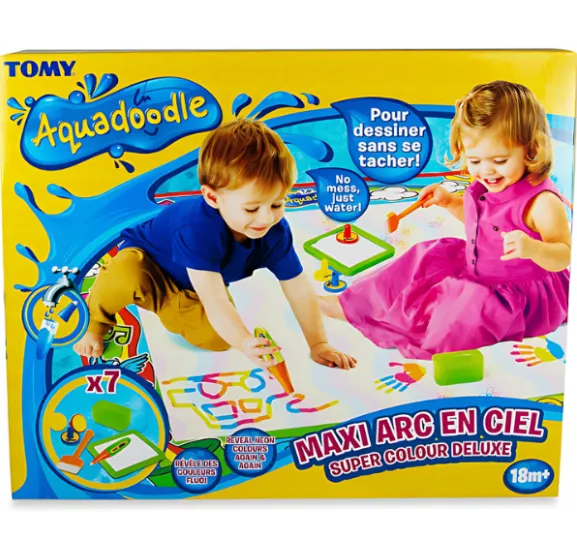 Creează opere de artă vii fără murdărie și dezordine cu covorul pentru desen Aquadoodle! Acest set include un marker special care se umple cu apă de la robinet. Desenează pe covor folosind markerul, pensule, mâini sau picioare ude – și bucură-te de procesul de creație.