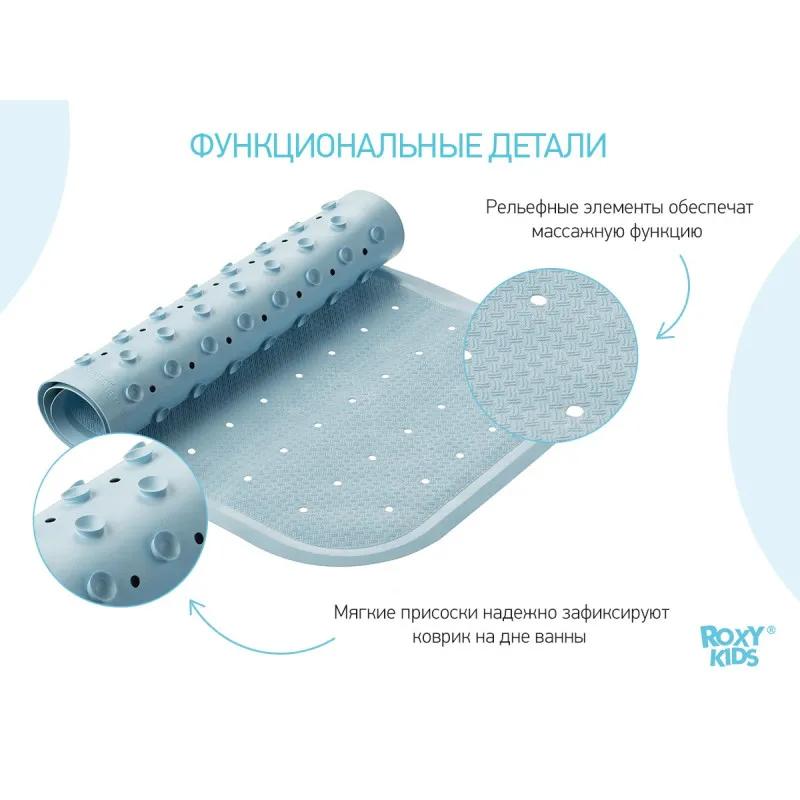 • Covor de baie din cauciuc anti-alunecare Roxy Kids 34.5x76 cm (cu gauri), Albastru (BM-34576-B)