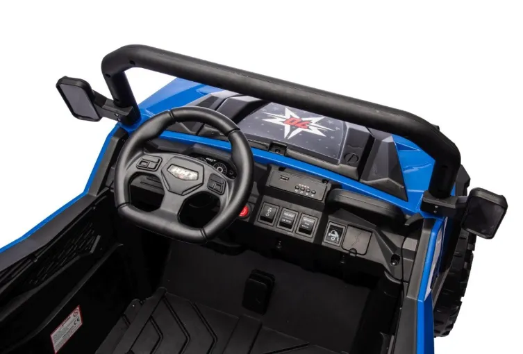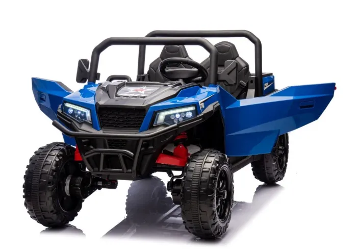 Acesta este un automobil electric pentru copii, în stil off-road, cu două locuri. Are o caroserie albastru aprins cu elemente negre, roți mari cu profil adânc pentru o bună tracțiune pe diverse suprafețe. Mașina este echipată cu volan, două scaune confortabile cu centuri de siguranță și un cadru de protecție. Este destinat activităților recreative în aer liber pentru copii, oferind siguranță, dezvoltând coordonarea și motricitatea, precum și oferind o experiență de condus plăcută și confortabilă.
