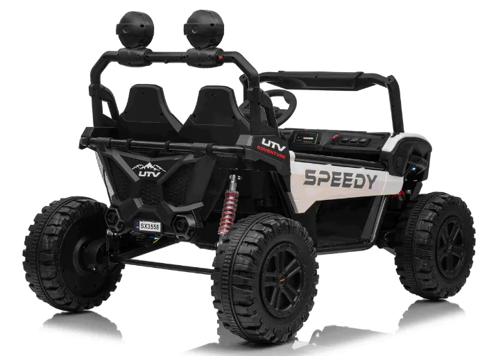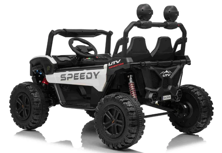 Modelul SX3558 este o mașină electrică pentru copii atractivă și funcțională, care combină designul plăcut, puterea și confortul. Cu două motoare de 30W și un acumulator de 12V 10Ah, această mașină oferă un mers lin, accelerație sigură și o durată de funcționare mai lungă fără încărcare.