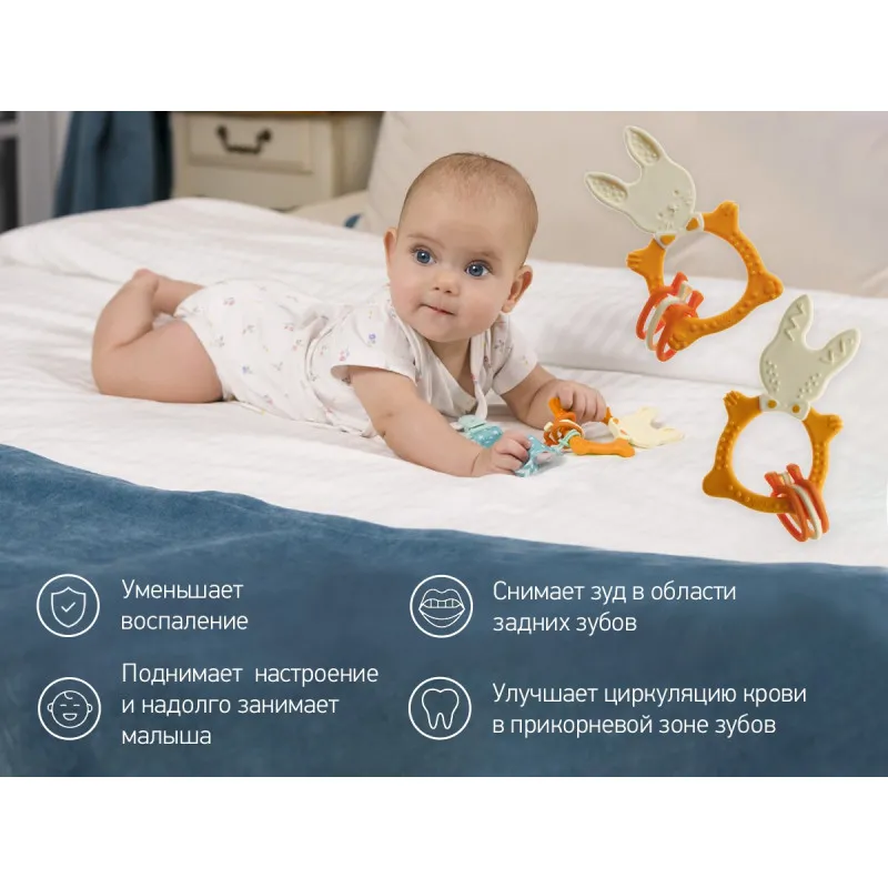 BUNNY TEETHER este util chiar si la dintitie, deoarece urechile iepurelui au forma unui aparator de gura, ceea ce va permite bebelusului sa amelioreze mancarimile de la cele mai indepartate gingii.