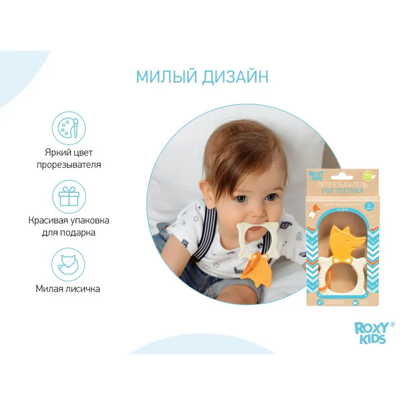 Dentisorul FOX TEETHER de la ROXY-KIDS este potrivit pentru toate etapele de dentitie la bebelusi.