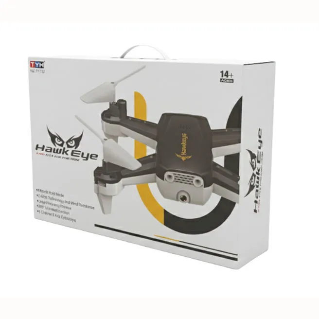 Acest quadcopter elegant Hawk Eye, cu carcasă aurie strălucitoare, este o alegere excelentă pentru zboruri captivante și perfecționarea abilităților de pilotaj. Modelul este echipat cu cadre de protecție în jurul elicelor, care îi sporesc semnificativ durabilitatea și rezistența la șocuri. Acesta suportă rotirea la 360 de grade în aer, ceea ce permite efectuarea de acrobații impresionante prin apăsarea unui singur buton.