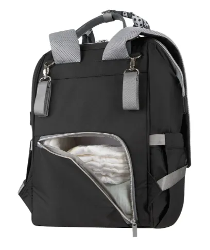 Funcții Convenabile - Include o salteluță pentru schimbat, cleme pentru prinderea de cărucior și o deschidere cu fermoar ușor accesibilă în partea din spate pentru a ajunge la fundul compartimentului principal, facilitând schimbarea scutecelor și ieșirile zilnice.