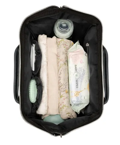 Pășiți cu stil și confort alături de geanta mama SIENA, realizată din materiale luxoase cu detalii satinate pentru un aspect sofisticat. Proiectată pentru nevoile dinamice ale părinților, această geantă multifuncțională combină eleganța cu practicitatea, asigurând accesul rapid la toate esențialele bebelușului.