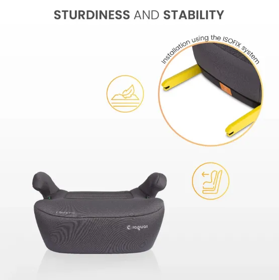 Sistemul ISOFIX integrat permite instalarea rapidă și fără efort a scaunului auto în mașină, asigurând o fixare stabilă și sigură. Înălțătorul rămâne pe loc chiar și atunci când copilul nu este așezat în el, prevenind deplasarea în timpul deplasării.