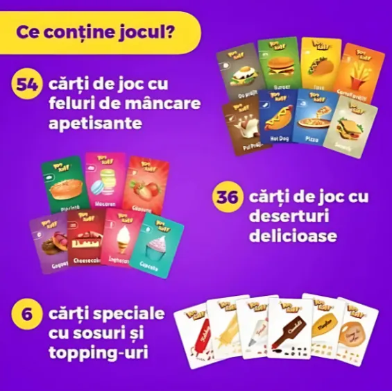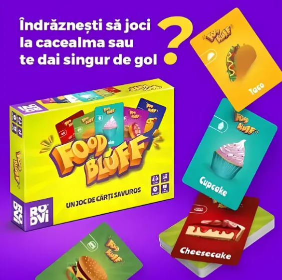 Intră în lumea savuroasă a jocului Food Bluff, un joc de cărți interactiv și distractiv care face ca întâlnirile în familie sau cu prietenii să fie de neuitat. În Food Bluff, controlul emoțiilor este esențial. Așadar, stăpânește-te, demască-i pe cei care bluffează din jurul tău și bucură-te de o porție zdravănă de distracție împreună cu cei dragi.
