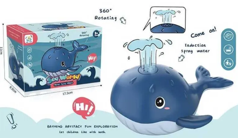 Dacă unui copil nu îi place să se scalde în cadă, această jucărie cu stropire va schimba acest lucru. Jucăria de baie ”Balenă” stropitoare este prietenul ideal pentru băița celor mici, asigurând distracția acestora. După pornirea si așezarea jucăriei pe suprafața apei, aceasta va pluti și va pulveriza apa sub forma unei mici fântâni.