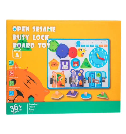 Jucându-se, copilașul tău apucă, deschide/ închide ușile și încuietoarele, rotește fidget-ul, aprinde luminițele, scoate sunete la claxon și la xilofon, desprinde magneții de la formele geometrice , desface fermoare/ scai/ triden, se privește în oglindă, simte diferite texturi, urmărește cifre, numără mărgeluțe, înoadă fundițe etc.